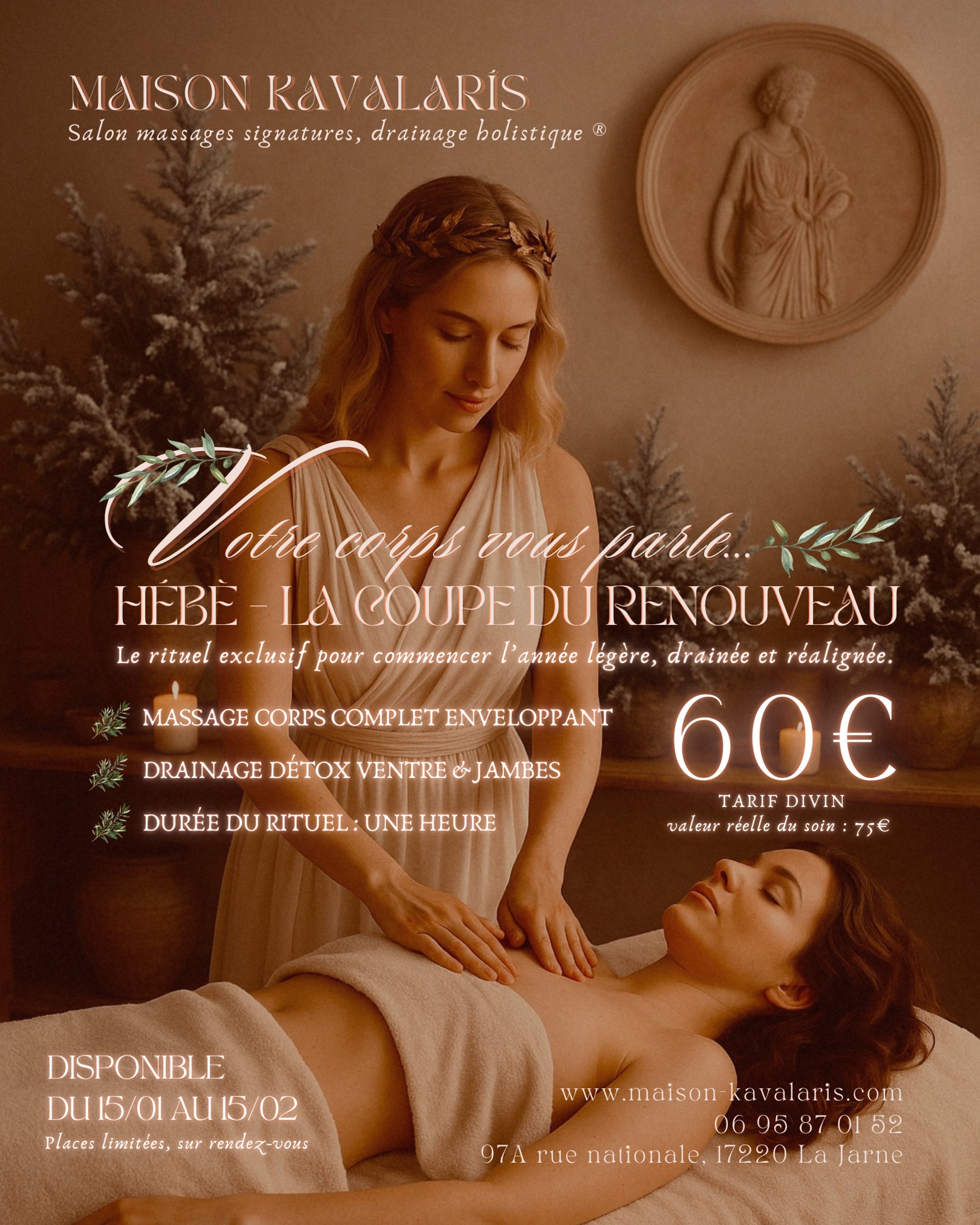 Le tout premier rituel 2026 est disponible - Hébè, la coupe du renouveau 🍇 Soin détox lumineux ✨ Massage corps complet x drainage ventre et jambes